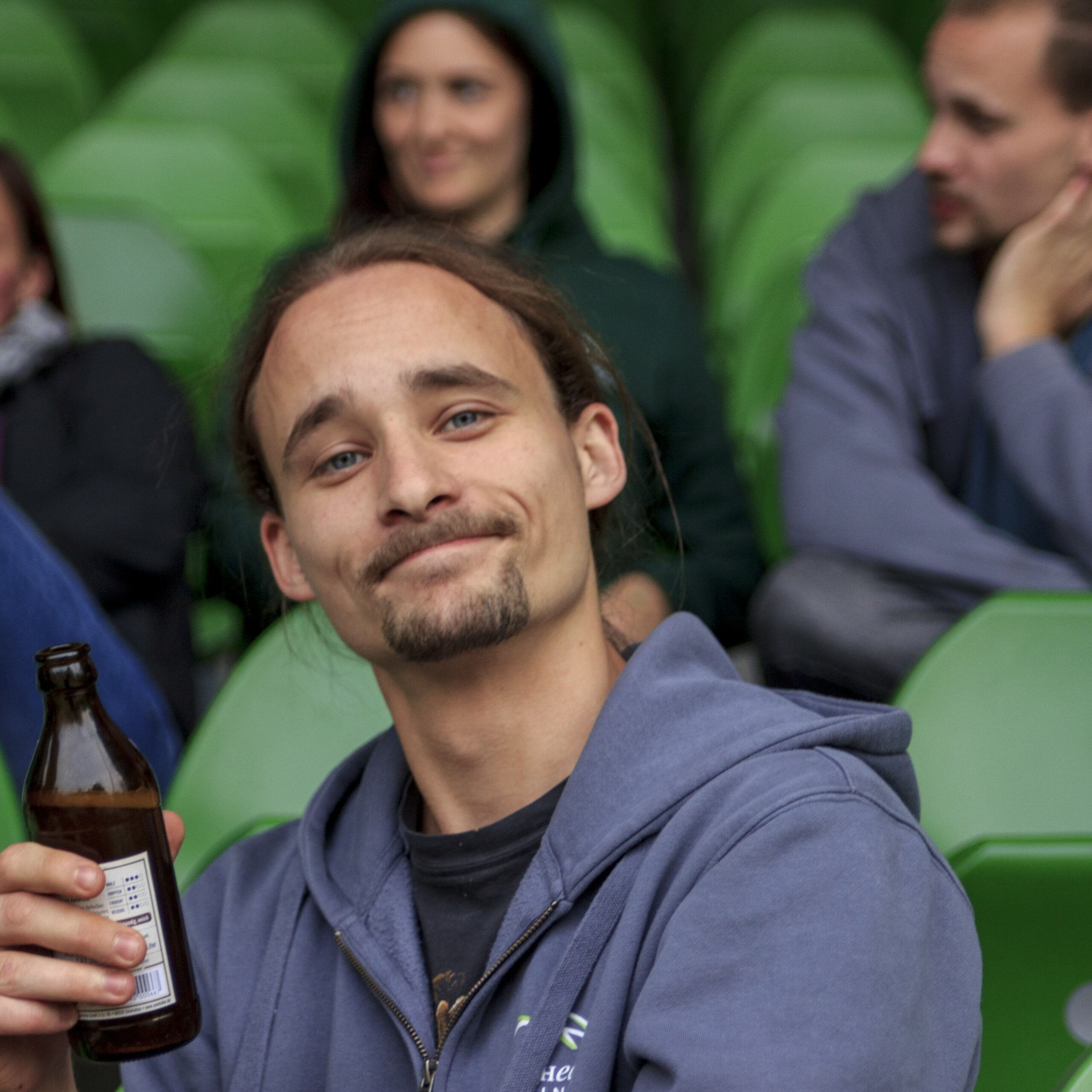Wähle eine Person auf einem Bild aus und schreibe auf, was die Person gerade denkt.